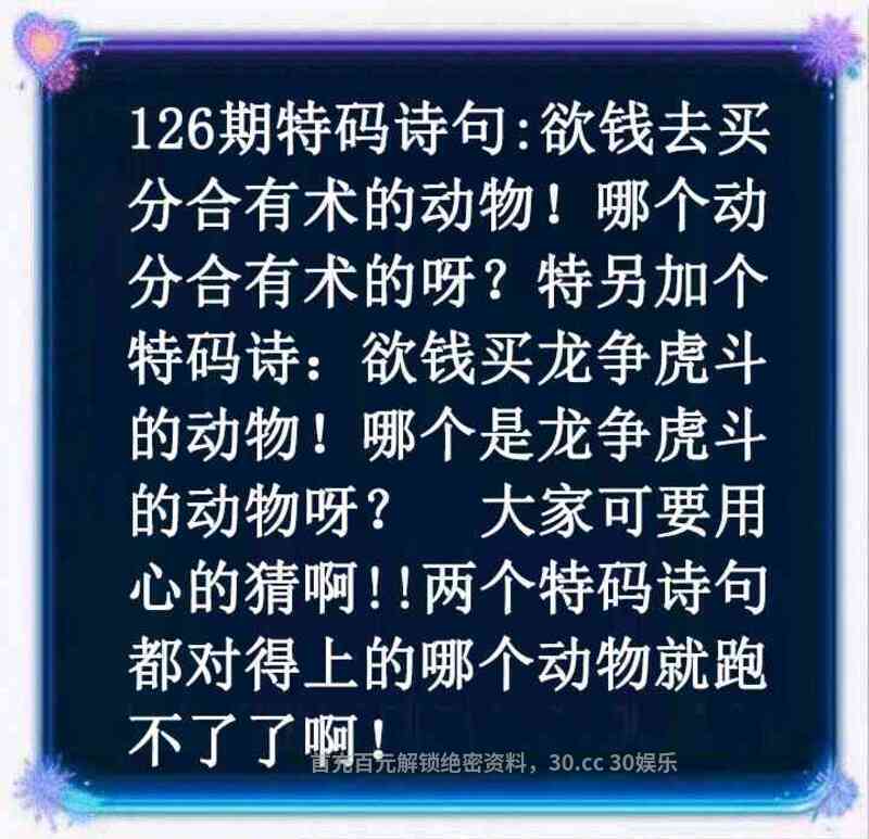 126期天机欲钱料:【①欲钱去买作茧自缚的动物!②欲钱买出类拔萃动物!】 解:本期龙争虎斗解争斗解战肖解虎马狗牛 综合八肖:羊猴虎狗龙鼠马蛇 综合五肖:羊猴虎狗龙 综合三肖:羊猴虎 综合特码:11.23.10.22.04.16.20.32.02.14 综合平特:羊羊羊